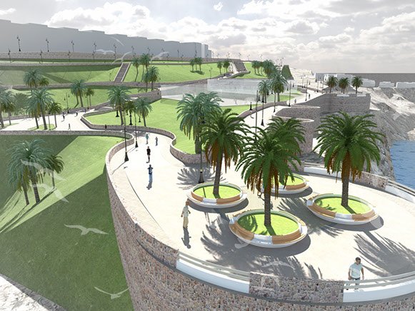 Sur un site emblématique de la ville, cette intervention audacieuse, comprenant des balades piétonnes et des espaces verts a pour but de lui ouvrir un espace d'exception aux habitants de la ville et aux touristes. Aux lignes dynamiques et harmonieuses, cet aménagement est conçue avec en premier lieu, le souci d’échelle et de confort de l’usager. Elle permettera de profiner de points de vue inedits sur la baie d'Al Hoceima.