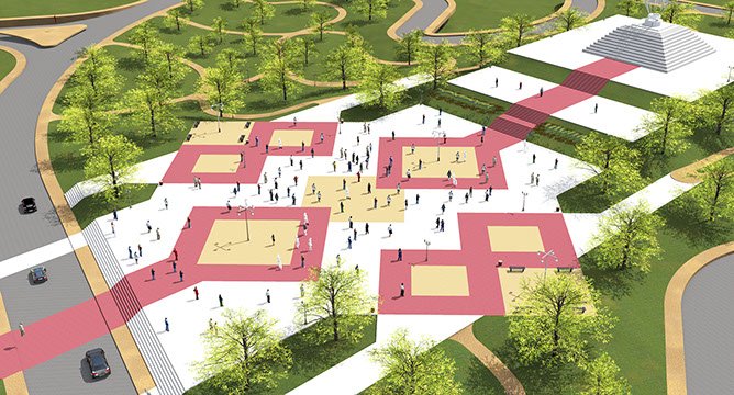 Dans le but de relier les différents points d’intérêt de la ville dans une seule balade urbaine, et dans le style particulier de la ville, cet ensemble d’aménagements urbains vise à donner à Ifrane un renouveau urbain tout en respecter son cachet.