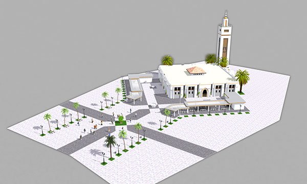 Le maitre d’ouvrage, qui loti et construit la zone, a tenu à entamer son projet par cet édifice qui en occupera la place centrale. Cette mosquée et son esplanade, formeront le noyau du lotissement.