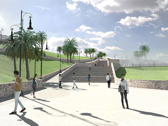Sur un site emblématique de la ville, cette intervention audacieuse, comprenant des balades piétonnes et des espaces verts a pour but de lui ouvrir un espace d'exception aux habitants de la ville et aux touristes. Aux lignes dynamiques et harmonieuses, cet aménagement est conçue avec en premier lieu, le souci d’échelle et de confort de l’usager. Elle permettera de profiner de points de vue inedits sur la baie d'Al Hoceima.